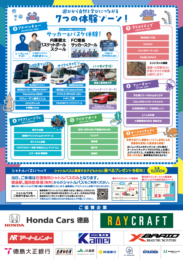 うずしおクリーンアップと海南小学校による漂着物アート、巨大「プラごみフィッシュ」の展示と、海ごみを学ぶコースの成果発表を行います。